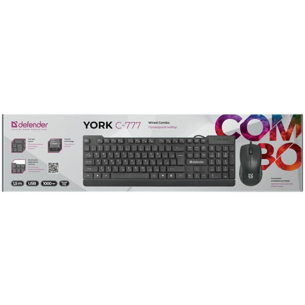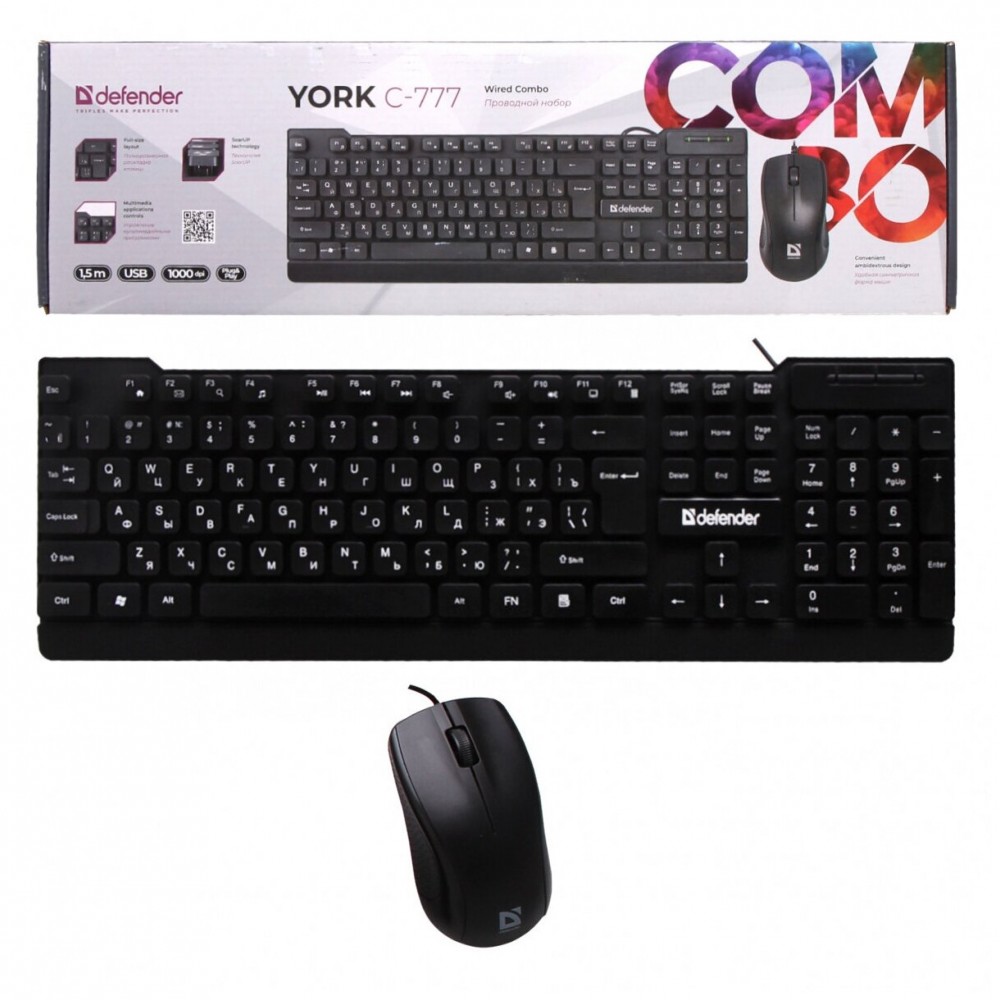 Defender York C-777 - проводной набор, состоящий из клавиатуры и мышки, который идеально подходит для использования в офисе.